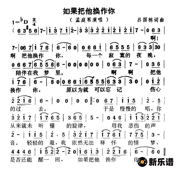 《如果把他换作你》简谱 孟庭苇-小叶子制谱