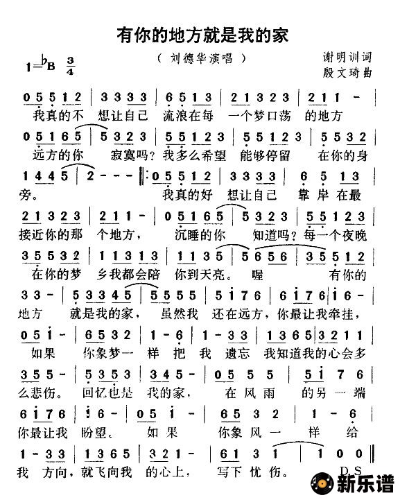 刘德华演唱的有你的地方就是我的家歌词,有你的地方就是我的家简谱.