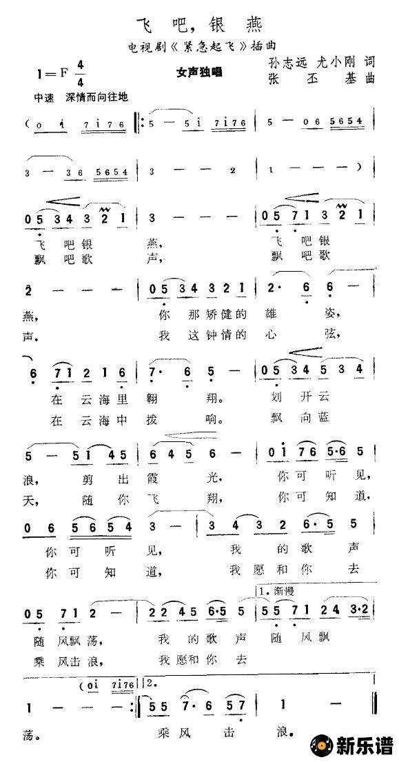 演唱的飞吧,银燕(电视剧《紧急起飞》插曲)歌词,飞吧,银燕(电视剧《紧急起飞》插曲)简谱.