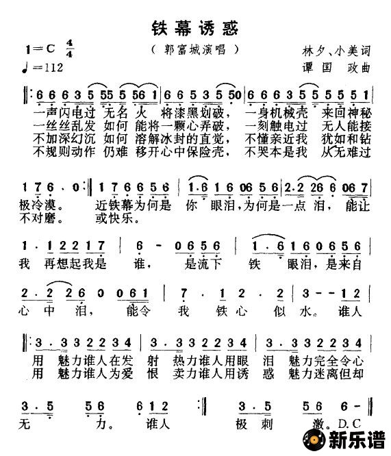 郭富城演唱的铁幕诱惑歌词,铁幕诱惑简谱.