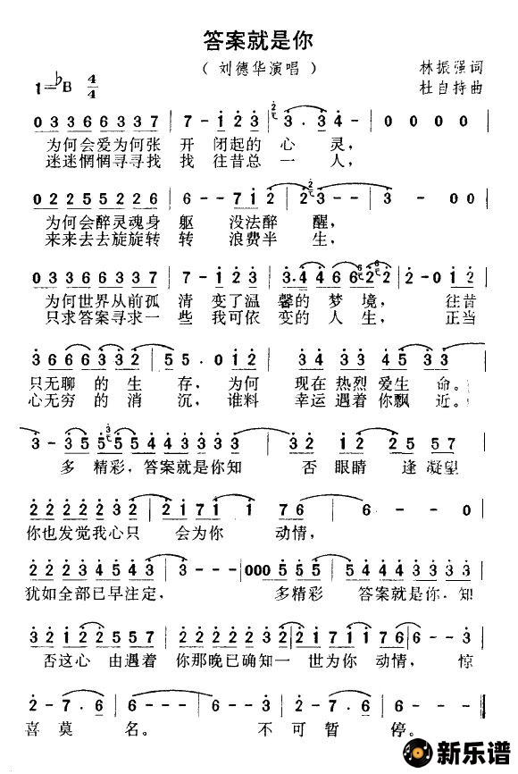 刘德华演唱的答案就是你歌词,答案就是你简谱.