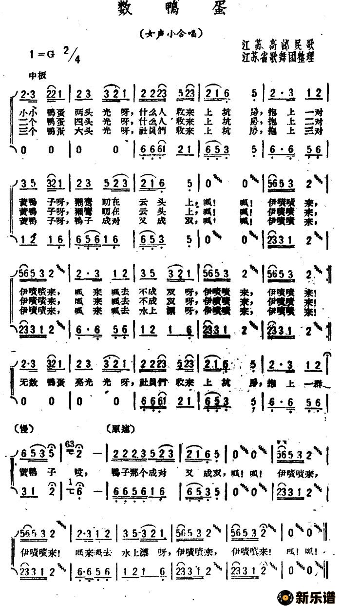 演唱的数鸭蛋(江苏高邮民歌)歌词,数鸭蛋(江苏高邮民歌)简谱.