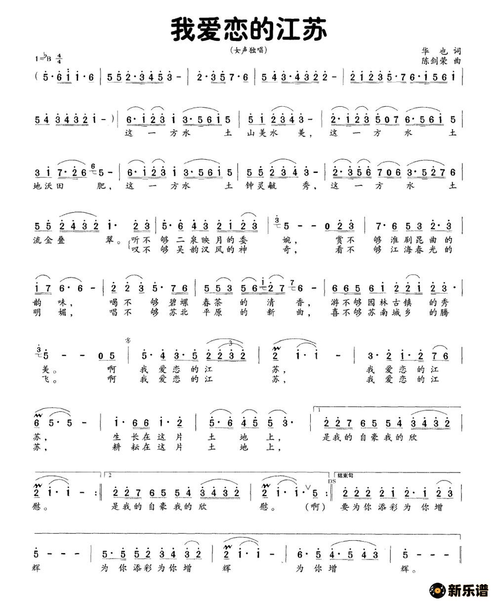 陈剑荣演唱的我爱恋的江苏歌词,我爱恋的江苏简谱.