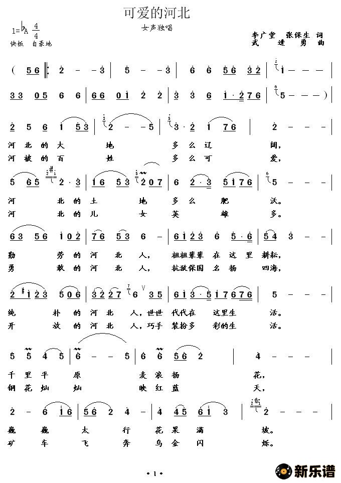 演唱的可爱的河北歌词,可爱的河北简谱.