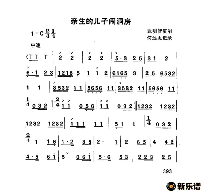 张明智演唱的亲生的儿子闹洞房(湖北大鼓)歌词,亲生的儿子闹洞房(湖北大鼓)简谱.