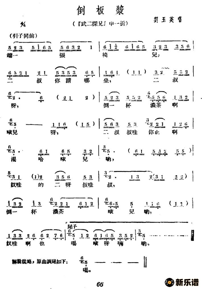 演唱的[广西文场]倒板浆(《武二探兄》选段)歌词,[广西文场]倒板浆(《武二探兄》选段)简谱.