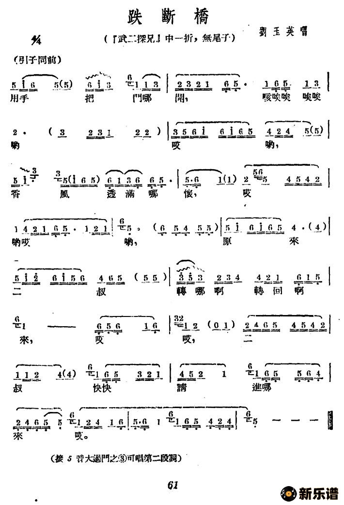 演唱的[广西文场]跌断桥(《武二探兄》选段、无尾子)歌词,[广西文场]跌断桥(《武二探兄》选段、无尾子)简谱.