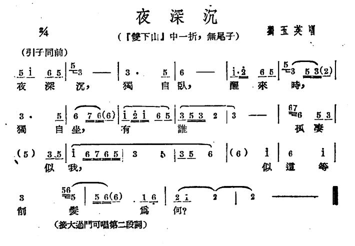 演唱的[广西文场]夜深沉(《双下山》选段、无尾子)歌词,[广西文场]夜深沉(《双下山》选段、无尾子)简谱.