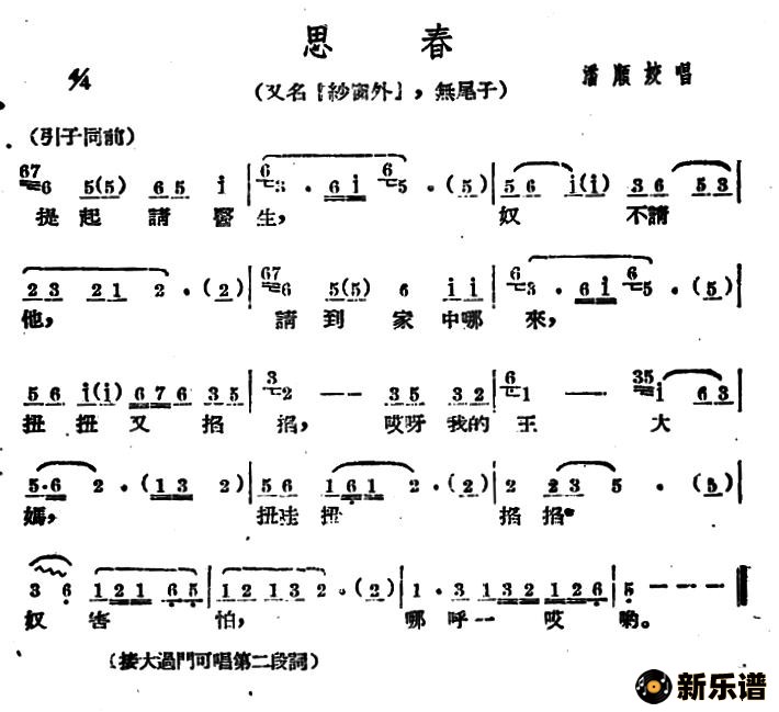 [广西文场]思春(又名:纱窗外)(无尾子)/ 相关曲谱
