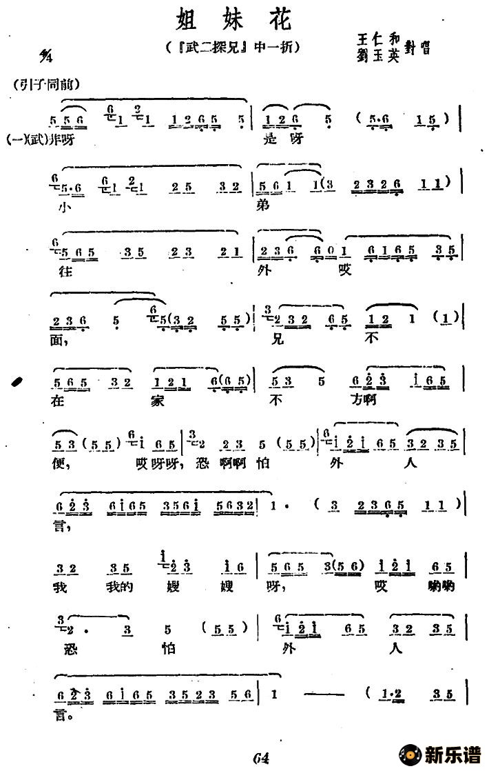 [广西文场]姐妹花(《武二探兄》选段)/ 武二探兄 相关曲谱