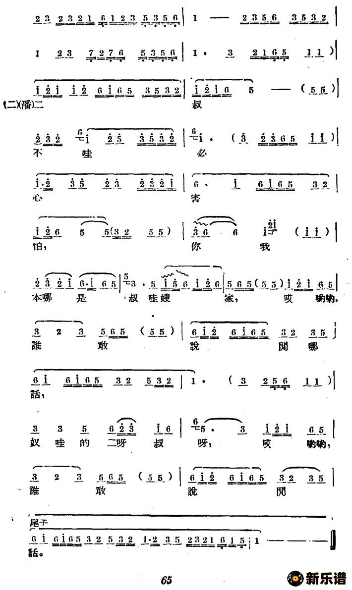 [广西文场]安春调(《武二探兄》选段、无尾子)简谱