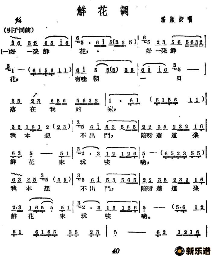 演唱的[广西文场]鲜花调歌词,[广西文场]鲜花调简谱.