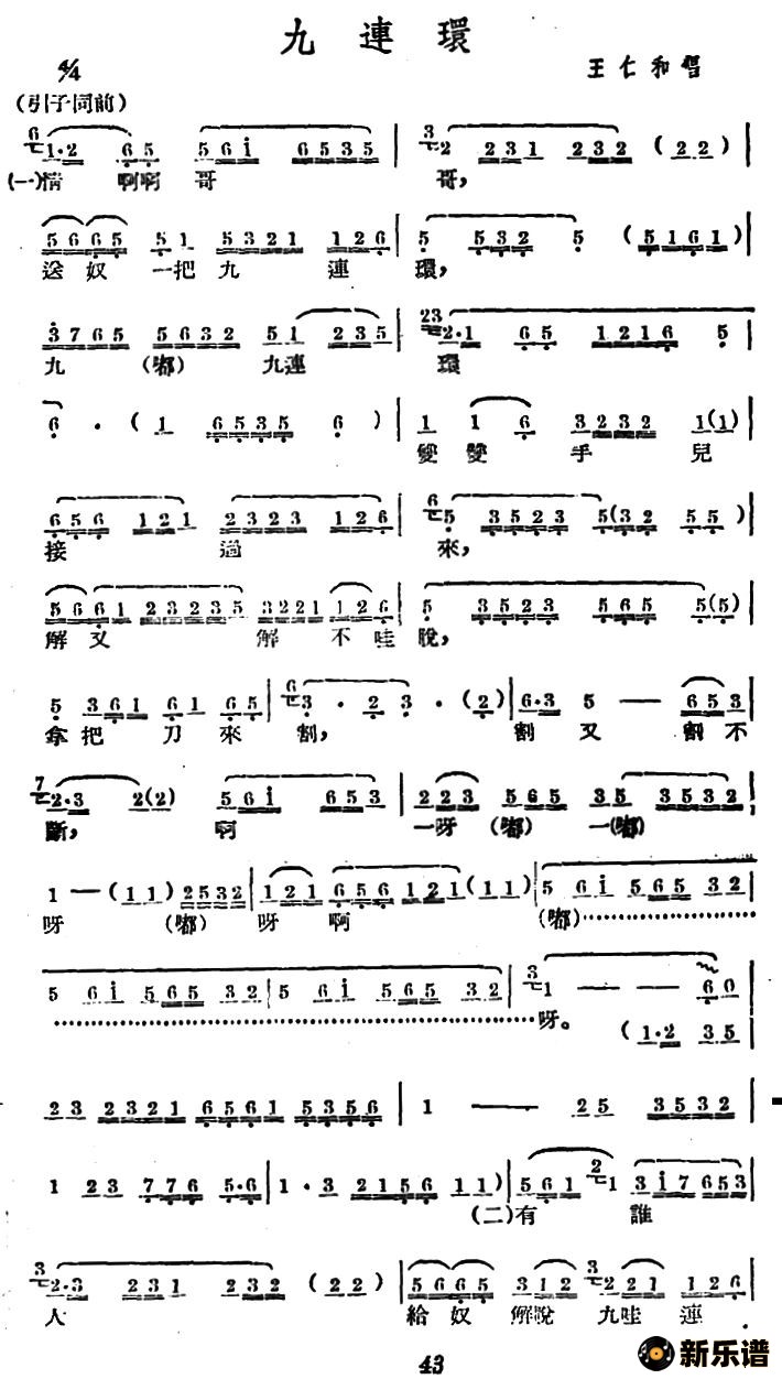 演唱的[广西文场]九连环歌词,[广西文场]九连环简谱.