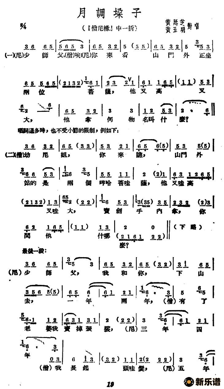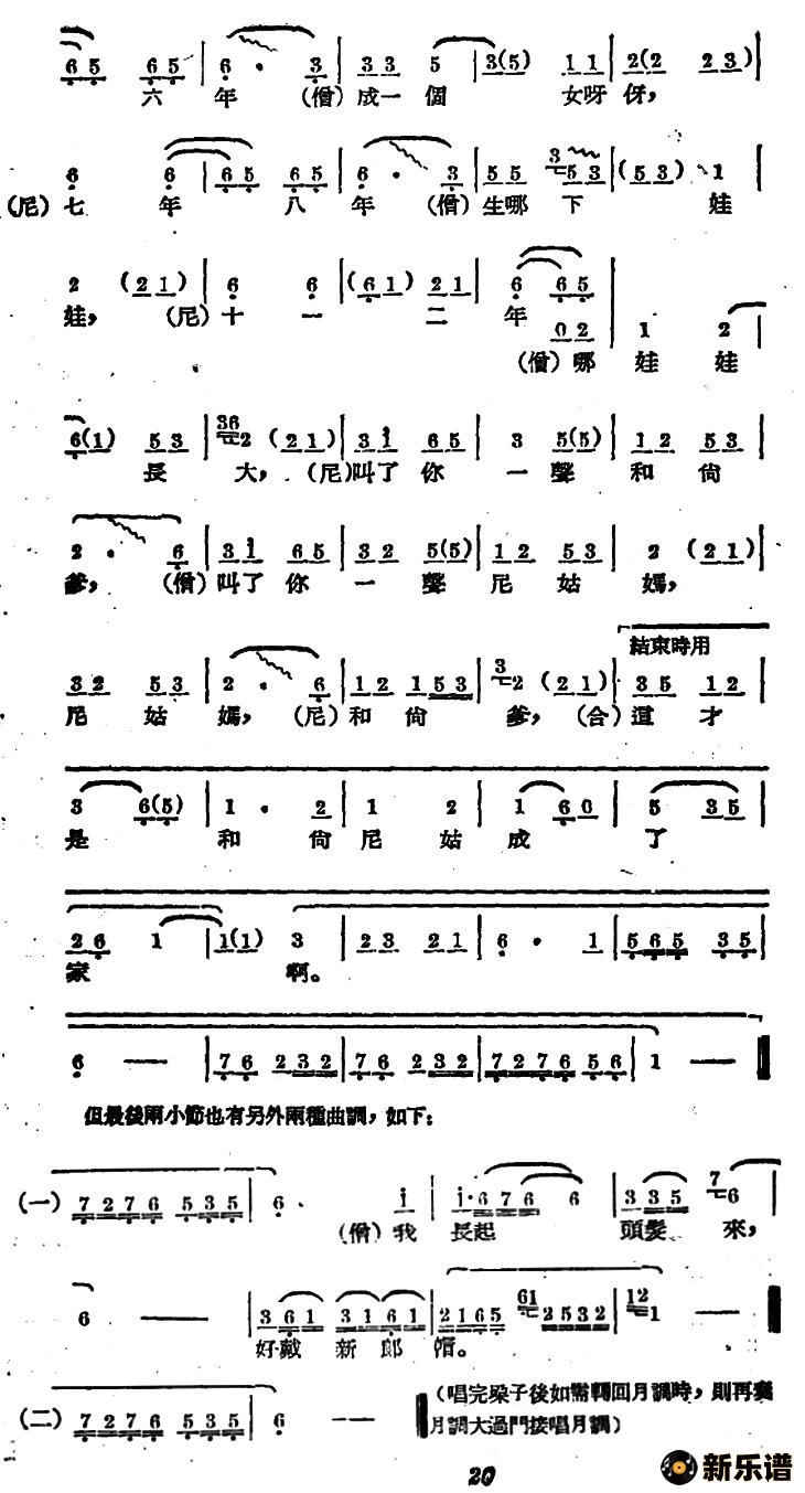 演唱的[广西文场]月调垛子(《僧尼缘》选段)歌词,[广西文场]月调垛子(《僧尼缘》选段)简谱.