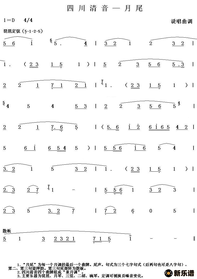 演唱的四川清音(月尾)歌词,四川清音(月尾)简谱.