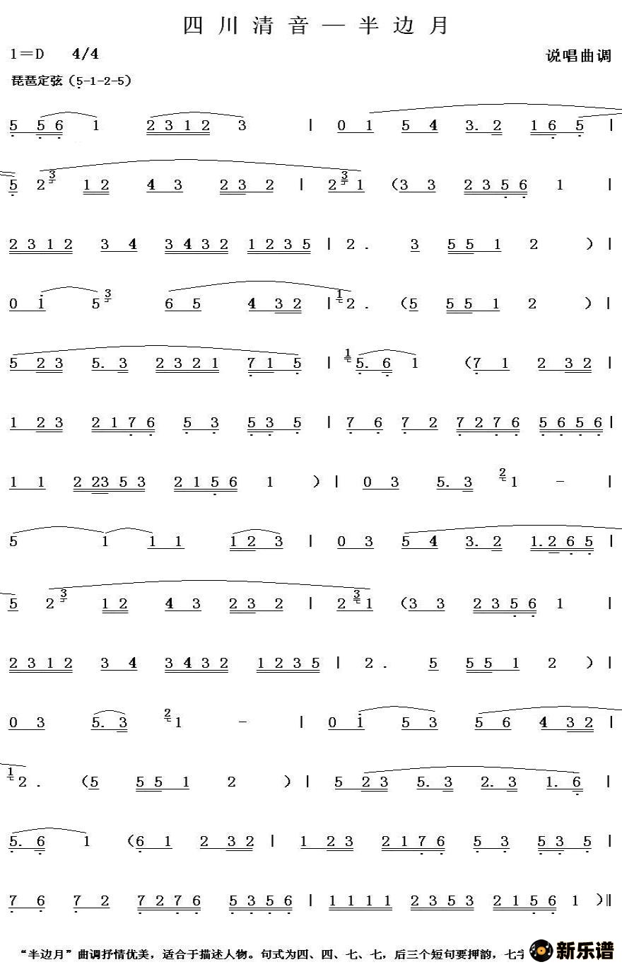 演唱的四川清音-半边月歌词,四川清音-半边月简谱.