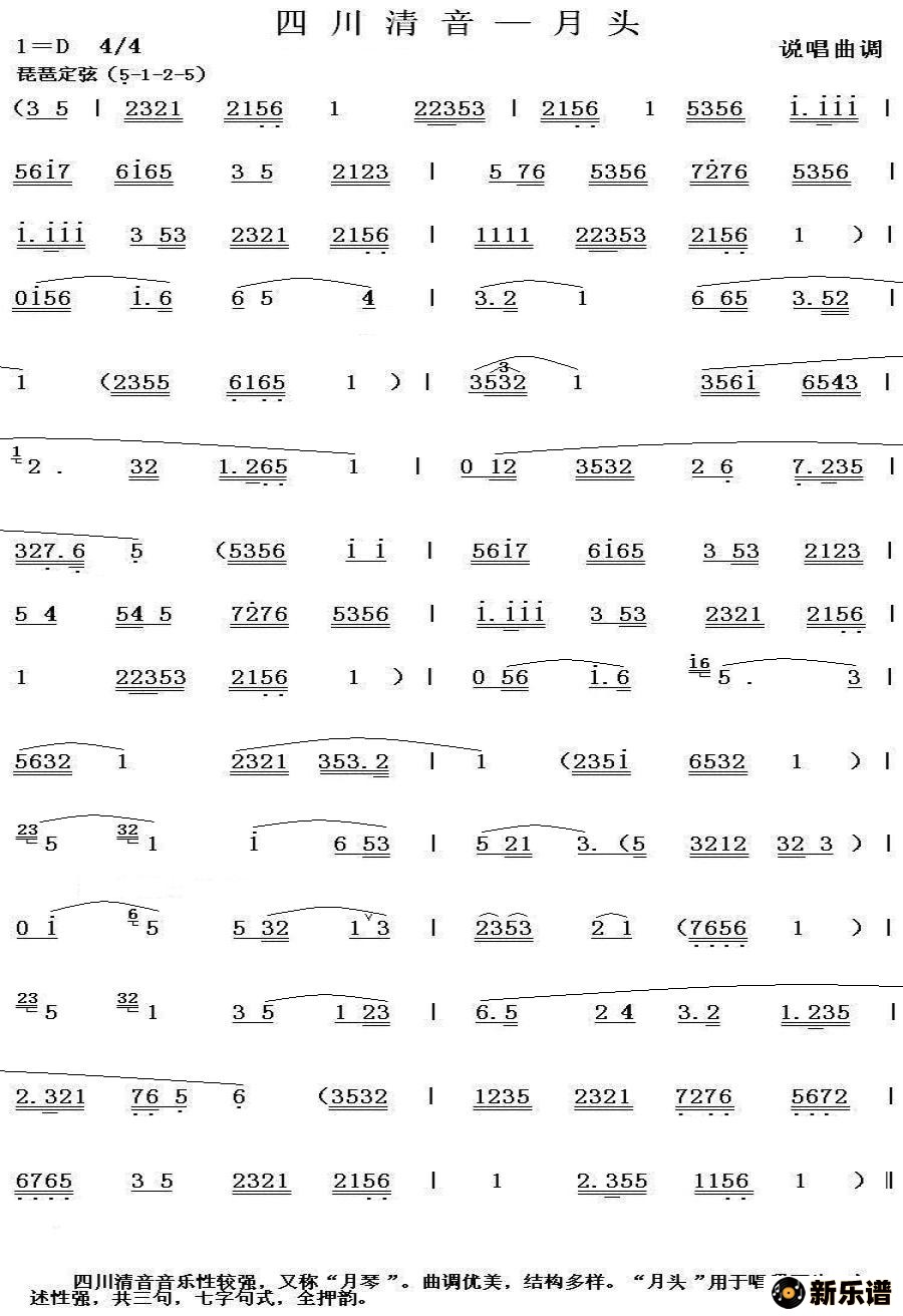 演唱的四川清音—月头歌词,四川清音—月头简谱.