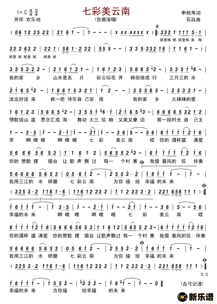《七彩美云南》简谱 吉娜