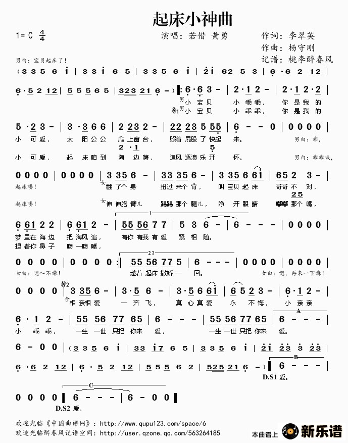 《起床小神曲》简谱 若惜 黄勇