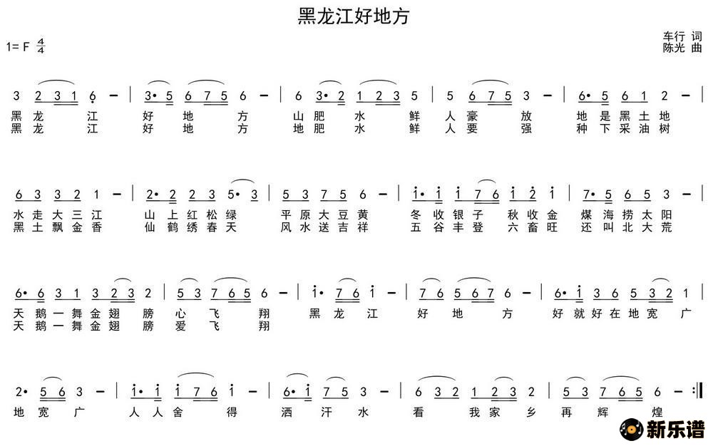 陈光演唱的黑龙江好地方歌词,黑龙江好地方简谱.