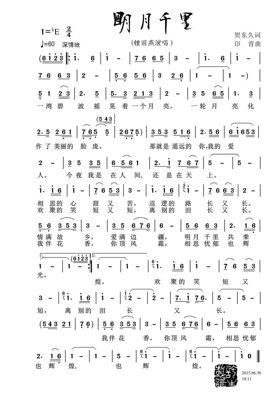 锺丽燕演唱的明月千里歌词,明月千里简谱.