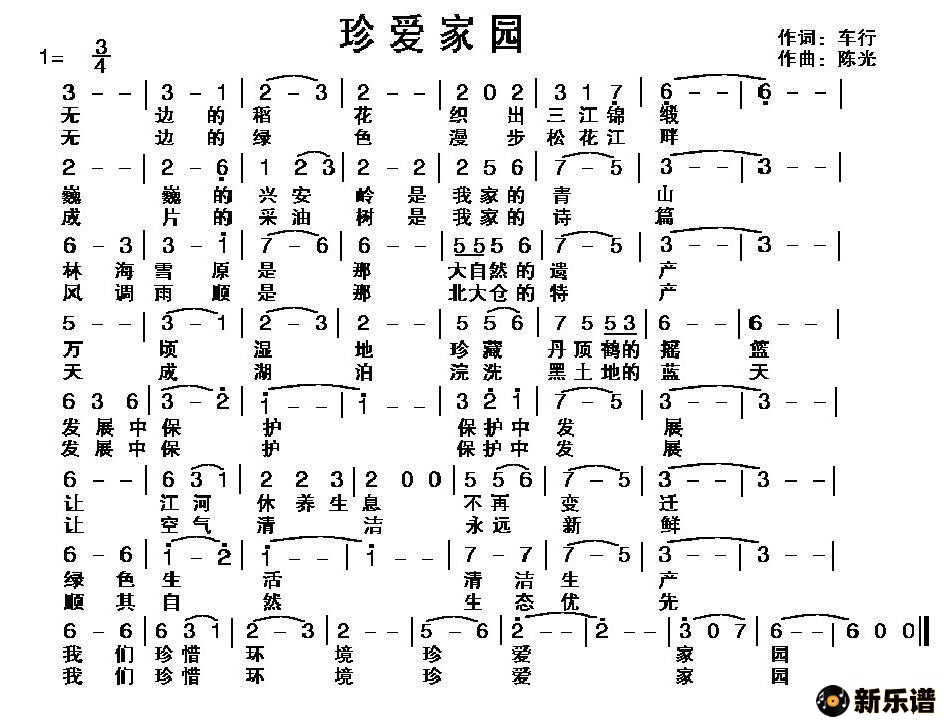 陈光演唱的珍爱家园歌词,珍爱家园简谱.