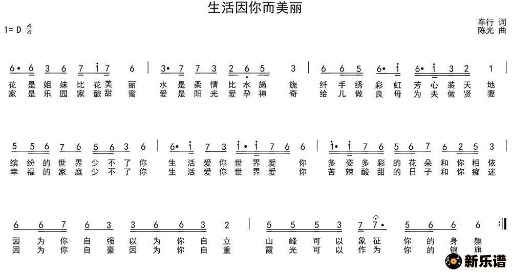 陈光演唱的生活因你而美丽歌词,生活因你而美丽简谱.