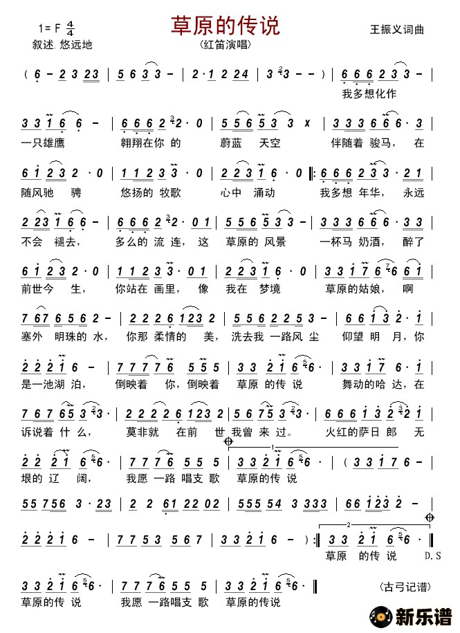 红笛演唱的草原的传说歌词,草原的传说简谱.