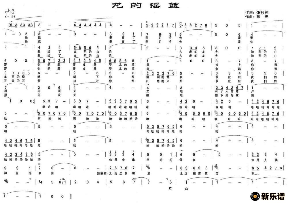 演唱的龙的摇篮(张振茹词 陈光曲)歌词,龙的摇篮(张振茹词 陈光曲)简谱.