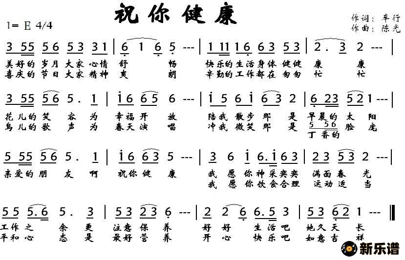 祝你健康(车行词 陈光曲)/ 相关曲谱