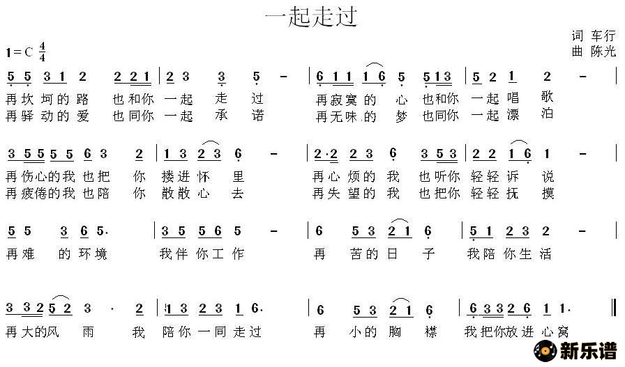 > 一起走过(车行词 陈光曲)简谱