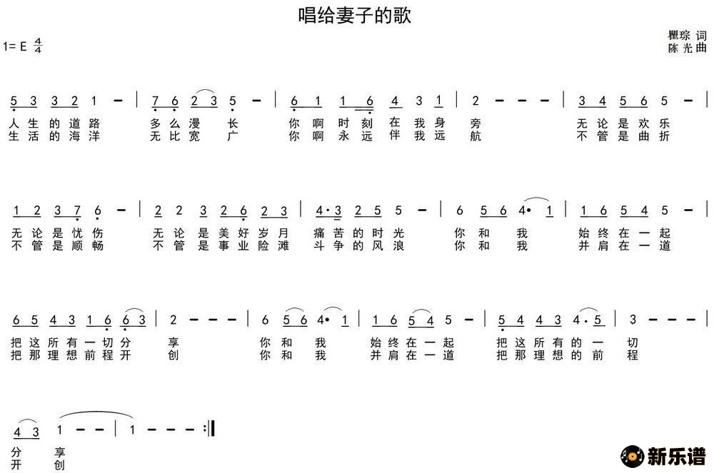 演唱的唱给妻子的歌(瞿琮词 陈光曲)歌词,唱给妻子的歌(瞿琮词 陈光曲)简谱.