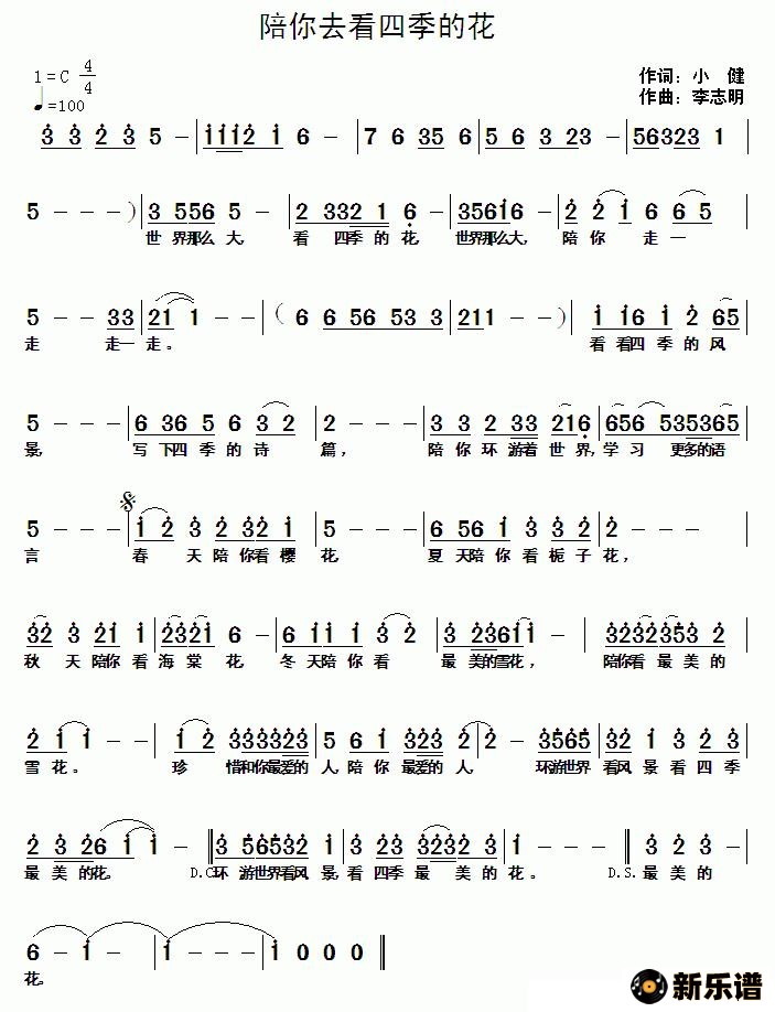 李志明演唱的陪你去看四季的花歌词,陪你去看四季的花简谱.
