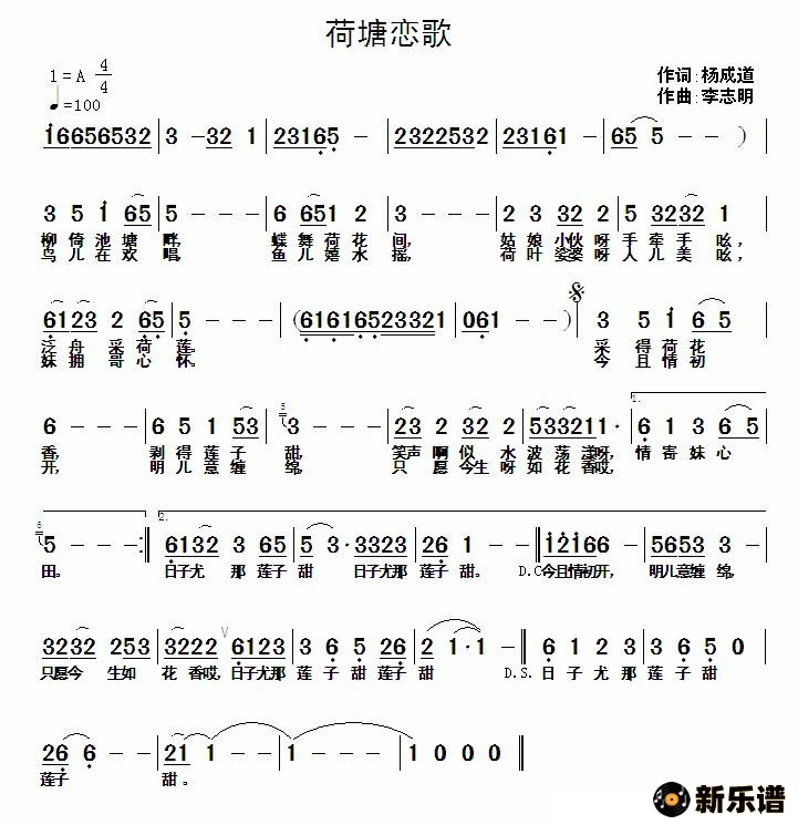 李志明演唱的荷塘恋歌歌词,荷塘恋歌简谱.
