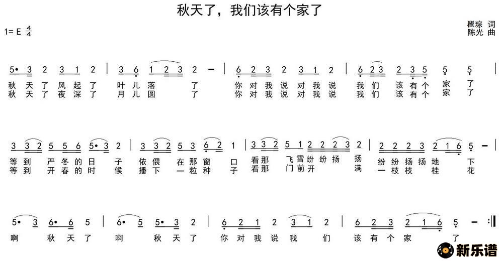 陈光演唱的秋天了,我们该有个家了歌词,秋天了,我们该有个家了简谱.
