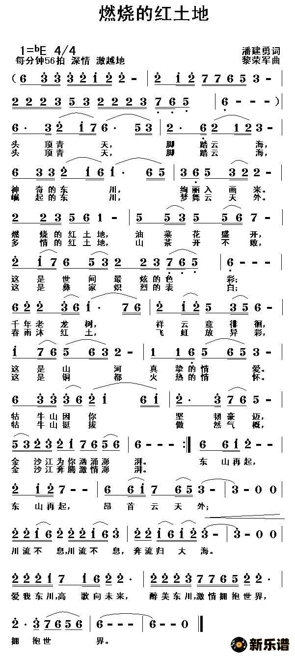 黎荣军演唱的燃烧的红土地歌词,燃烧的红土地简谱.