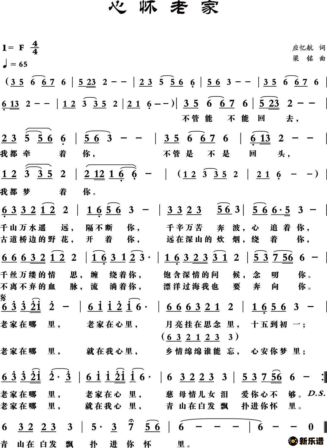 演唱的心怀老家(应忆航词 梁铭曲)歌词,心怀老家(应忆航词 梁铭曲)简谱.