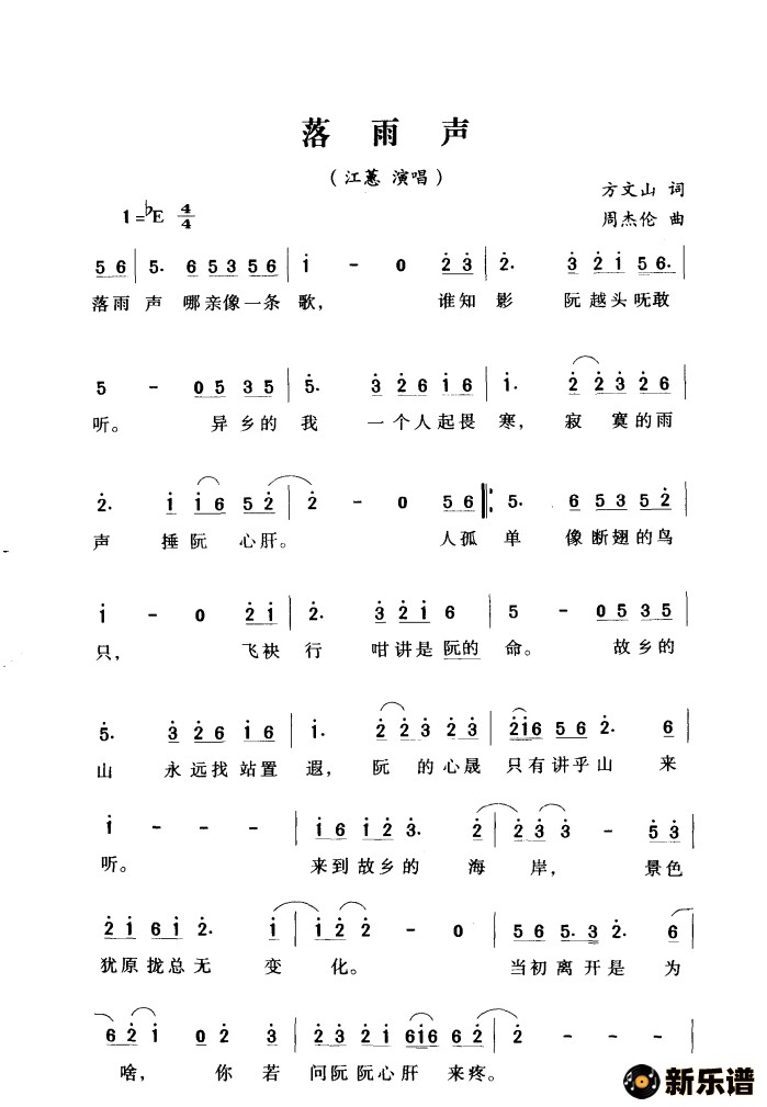 江蕙演唱的落雨声歌词,落雨声简谱.