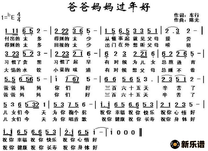 陈光演唱的爸爸妈妈过年好歌词,爸爸妈妈过年好简谱.