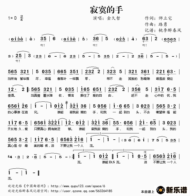 金久哲演唱的寂寞的手歌词,寂寞的手简谱.