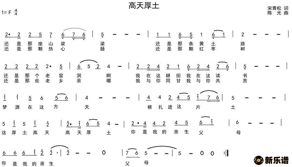 > 高天厚土(宋青松词 陈光曲)简谱