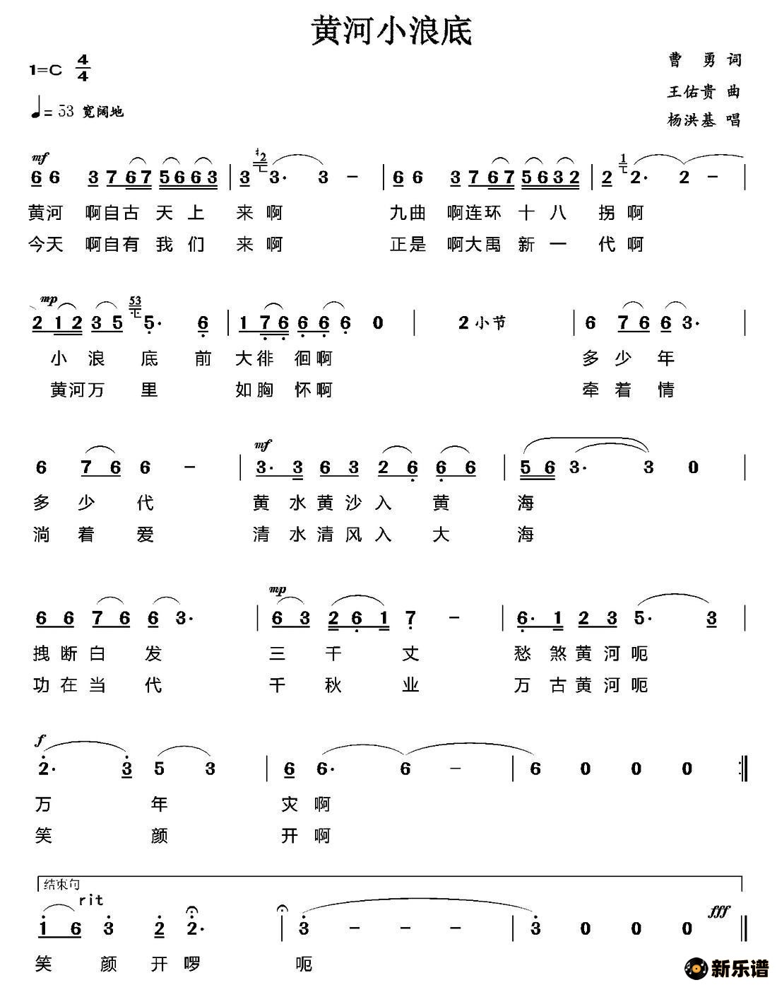 王佑贵演唱的黄河小浪底歌词,黄河小浪底简谱.