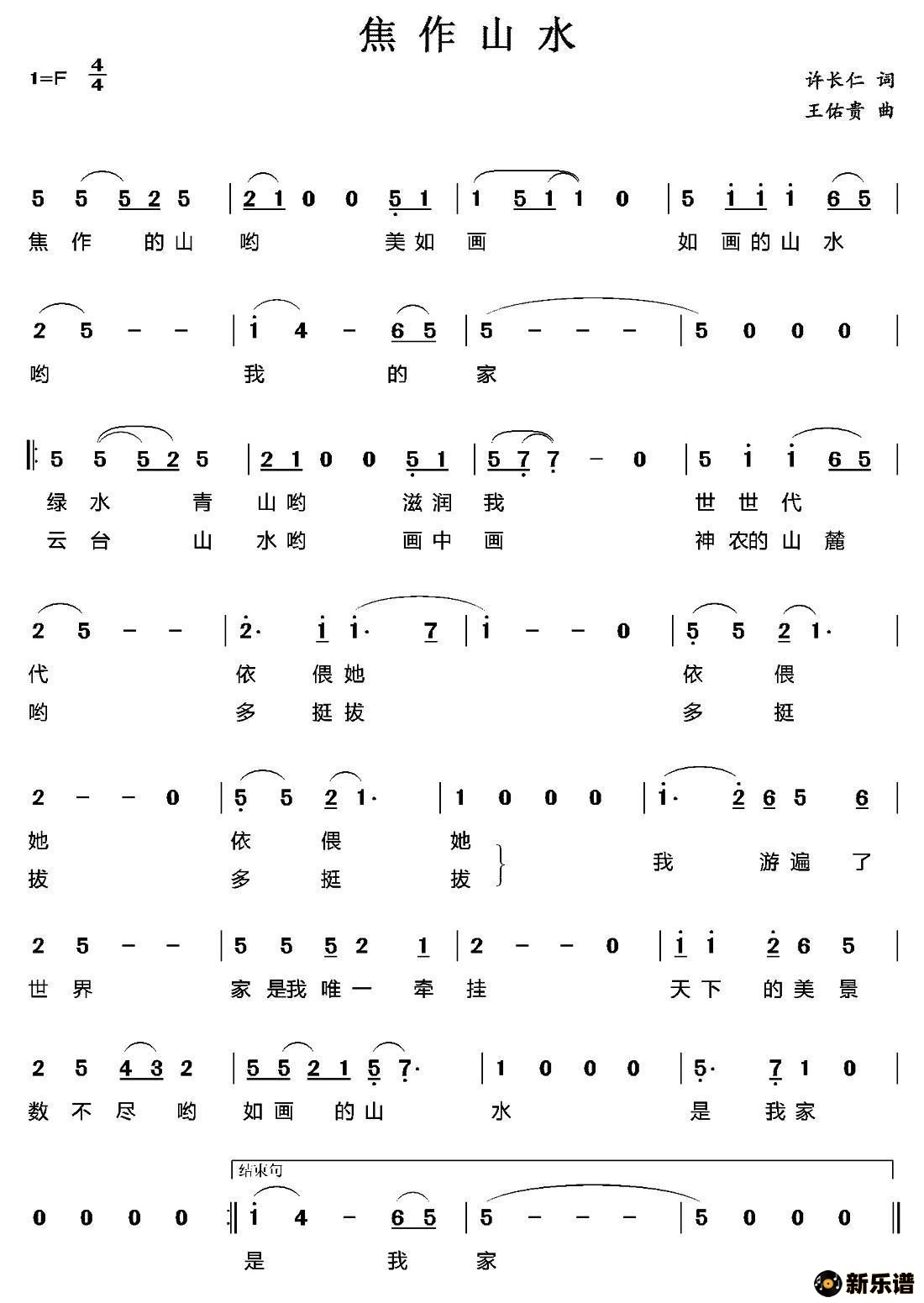 王佑贵演唱的焦作山水歌词,焦作山水简谱.