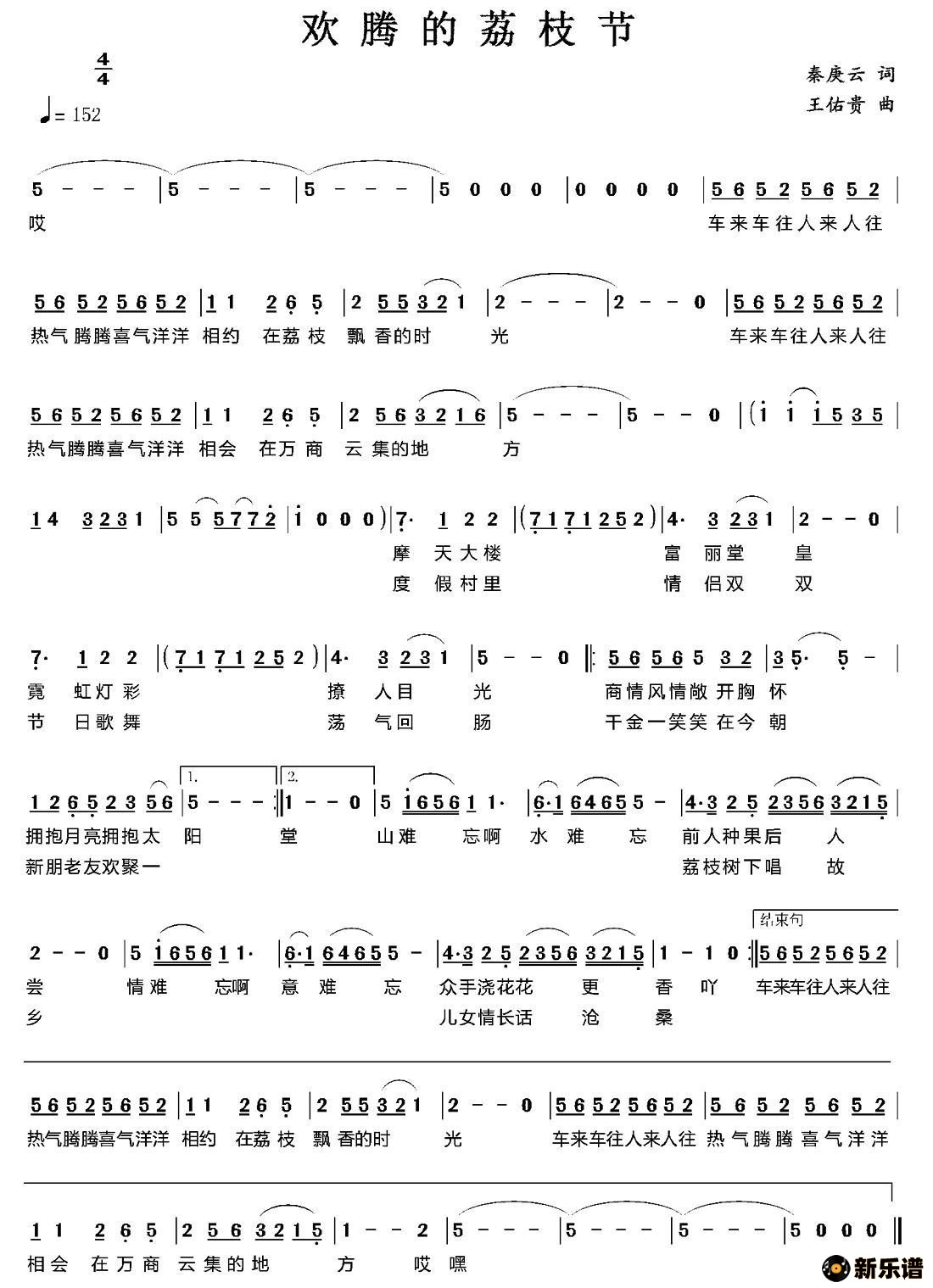 王佑贵演唱的欢腾的荔枝节歌词,欢腾的荔枝节简谱.