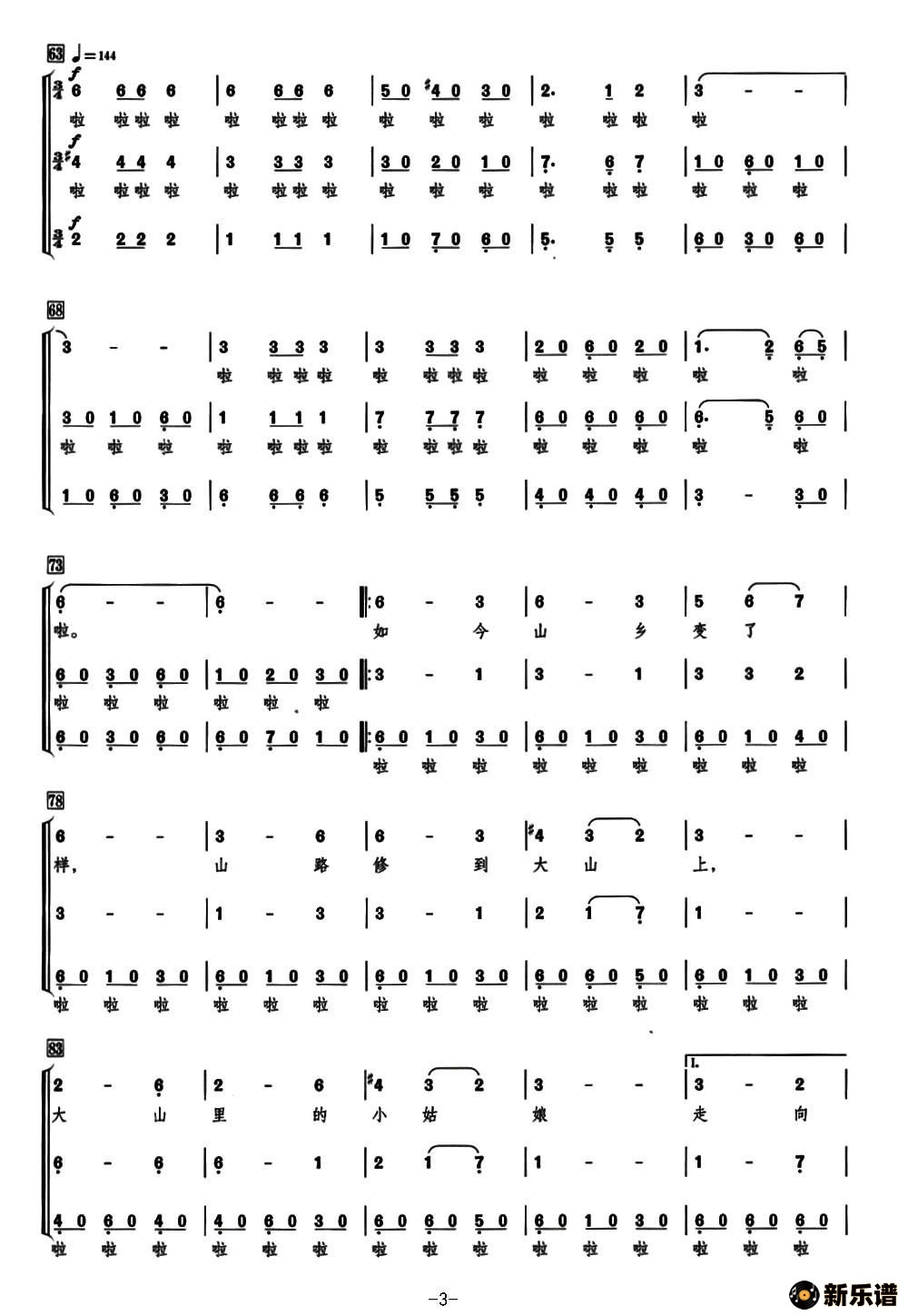 > 大山里的小姑娘(黄莉词 陈光曲、杜鸣心改编合唱曲)简谱