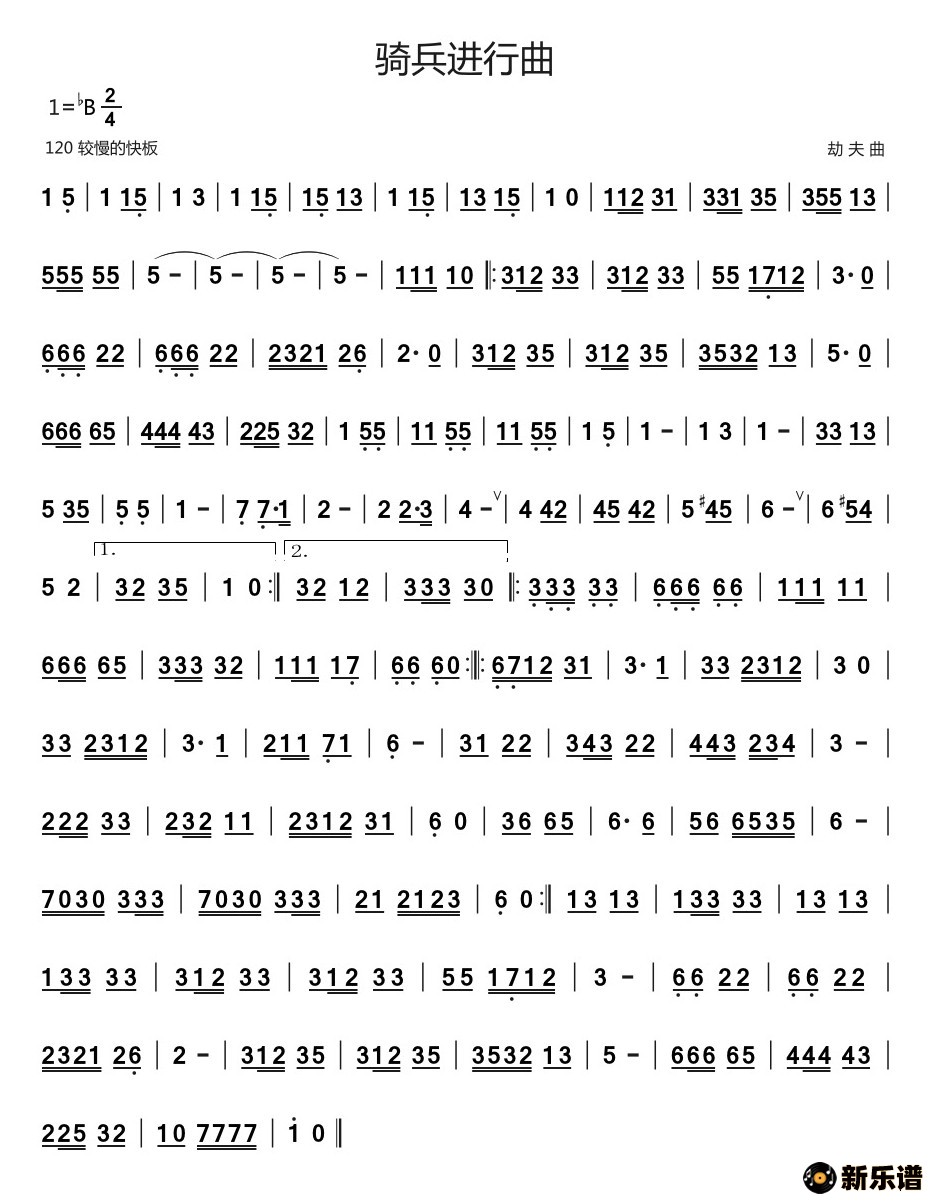 演唱的骑兵进行曲歌词,骑兵进行曲简谱.