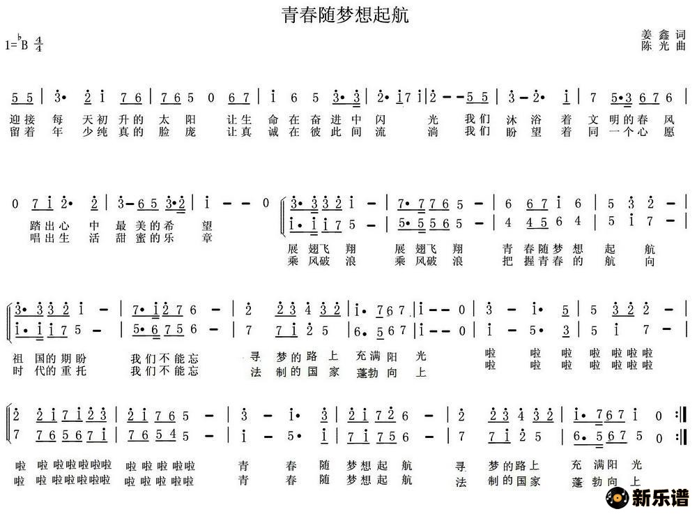《青春随梦想起航》简谱 陈光