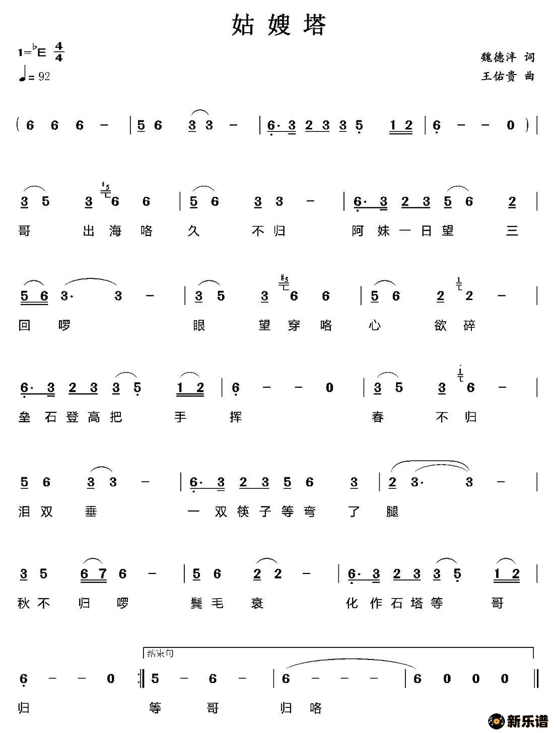 王佑贵演唱的姑嫂塔歌词,姑嫂塔简谱.