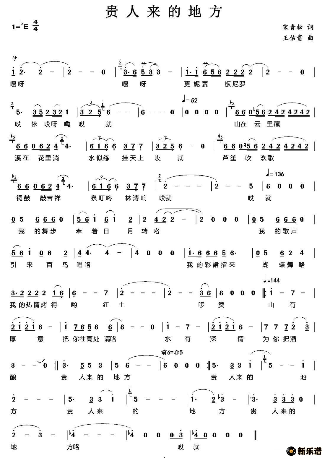 王佑贵演唱的贵人来的地方歌词,贵人来的地方简谱.