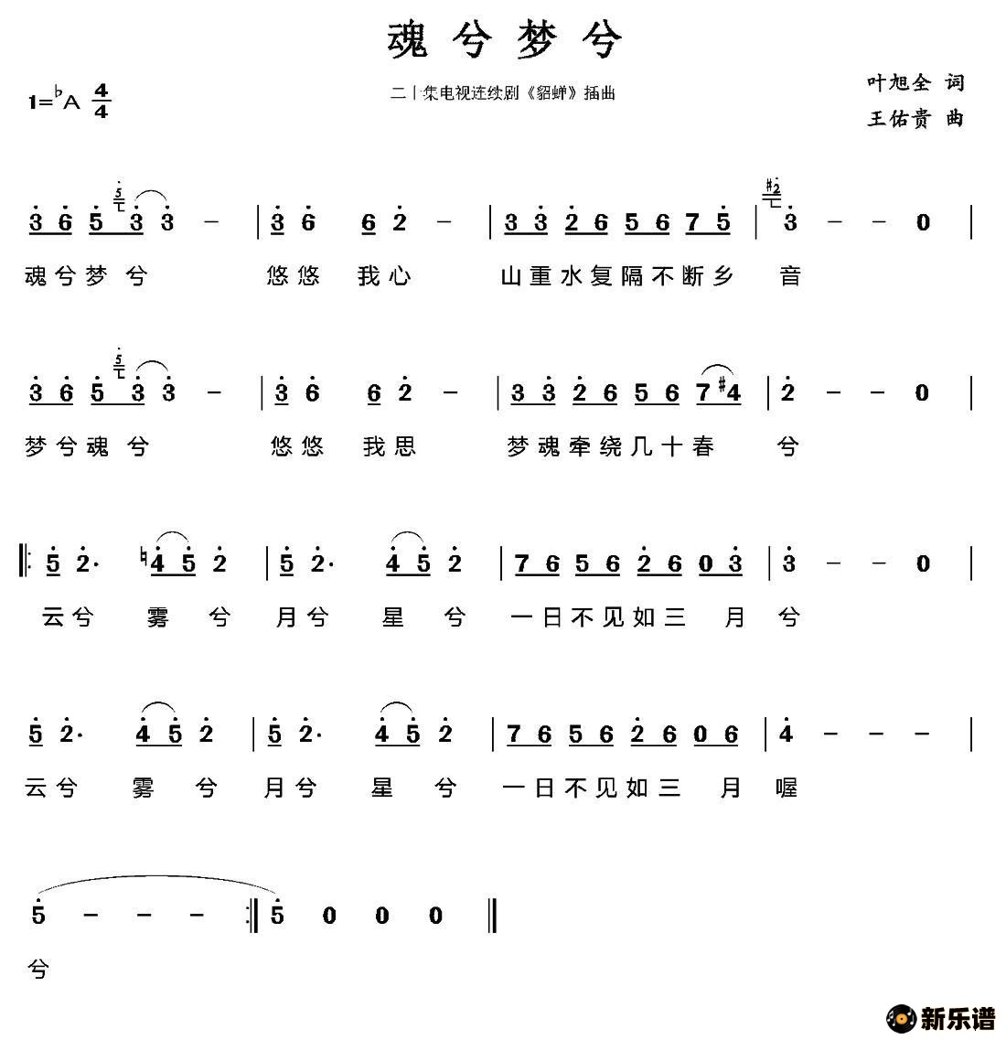 《魂兮梦兮(电视剧《貂蝉》插曲)》简谱 王佑贵